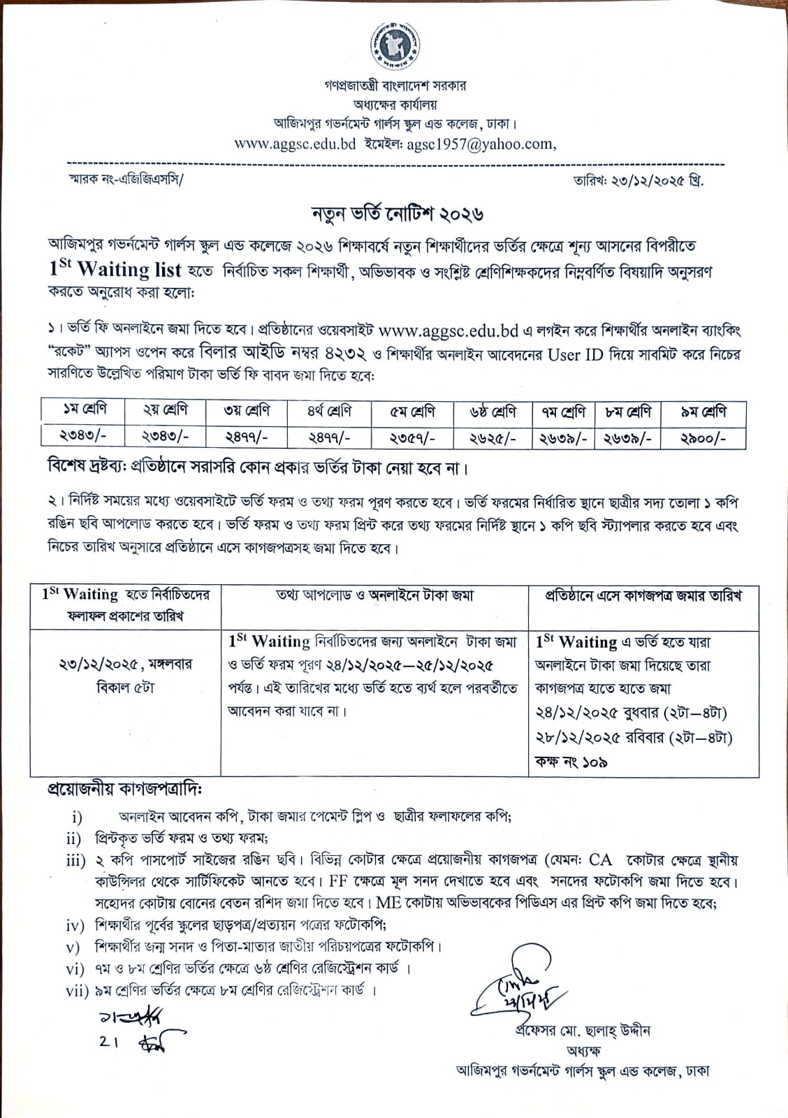 অধ্যক্ষ প্রফেসর মো. ছালাহ্ উদ্দীন শিক্ষার্থীদের নিয়মিত ক্লাসে উপস্থিত থেকে শ্রেণিপাঠ কার্যক্রমে অধিকতর সম্পৃক্ত থাকার বিষয়ে অভিভাবকদের সহযোগিতা চেয়েছেন।